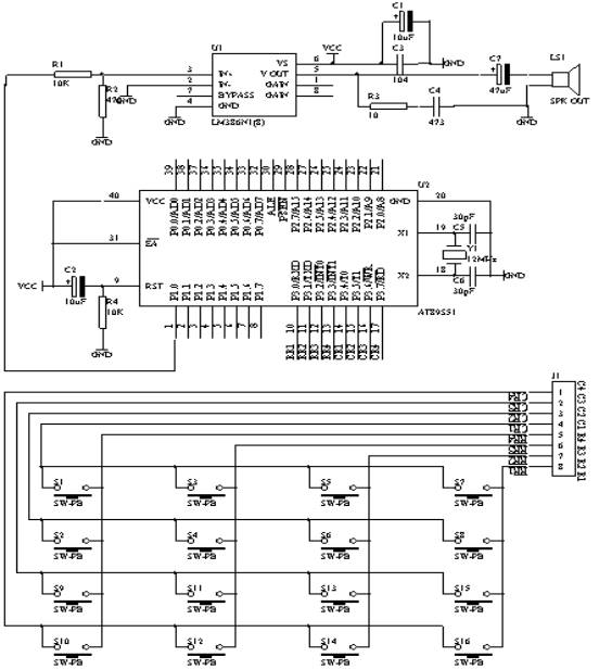 (1.       由4X4组成16个按钮矩阵,设计成16个音。