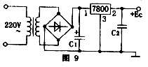 6.三端集成稳压器 三端固定集成稳压器在使用时,道德要根据输出电压的正、负选择7800系列或7900系列。7800系列是正稳压器,7900系列是负稳压器,它们的输出电压分别是+5V~+24V和-5V~-24V。输出电流有0.1A、0.5A和1.5A。图9是7800系列稳压器典型应用线路。在新窗口打开查看!