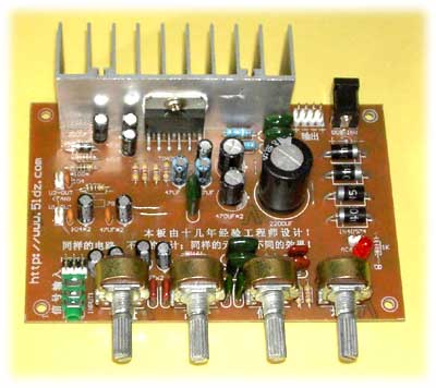 TDA2005功放板采用电脑设计,元件分布美观合理,板上自带整流器,可以直接输入交流电,也可以直接输入直流电。输入输出采用和电子实验套件相兼容的插针,扩展方便。本板使用方便简单,接上音箱、CD、VCD、DVD、MP3、电脑和电源即可工作。有音量控制、高音控制、左右声道均衡控制,采用全新正品元件。
